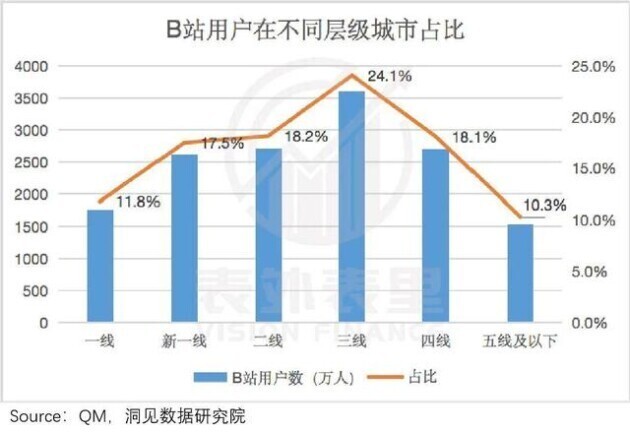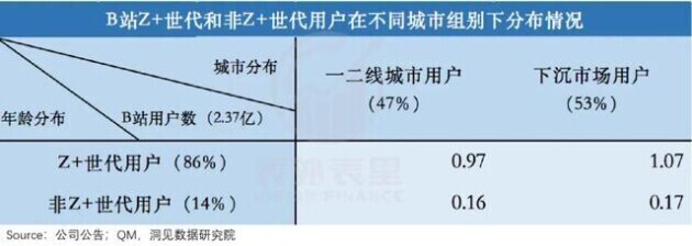 据B站2021Q2电线岁以下,也就是Z+世代。同时QM数据显示,B站用户在一二线%。