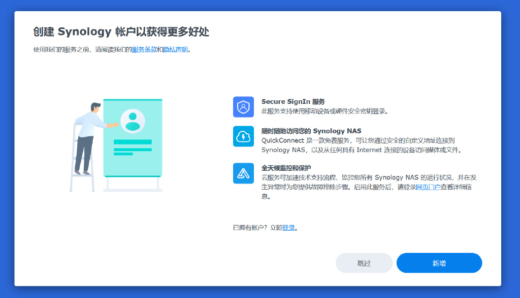 ▼登录Synology账户最重要的是可以获得QuickConnect、与AME功能,其他的还是比价次要的。黑群晖用户不要登录账号,洗白用户最好不要使用QC服务。