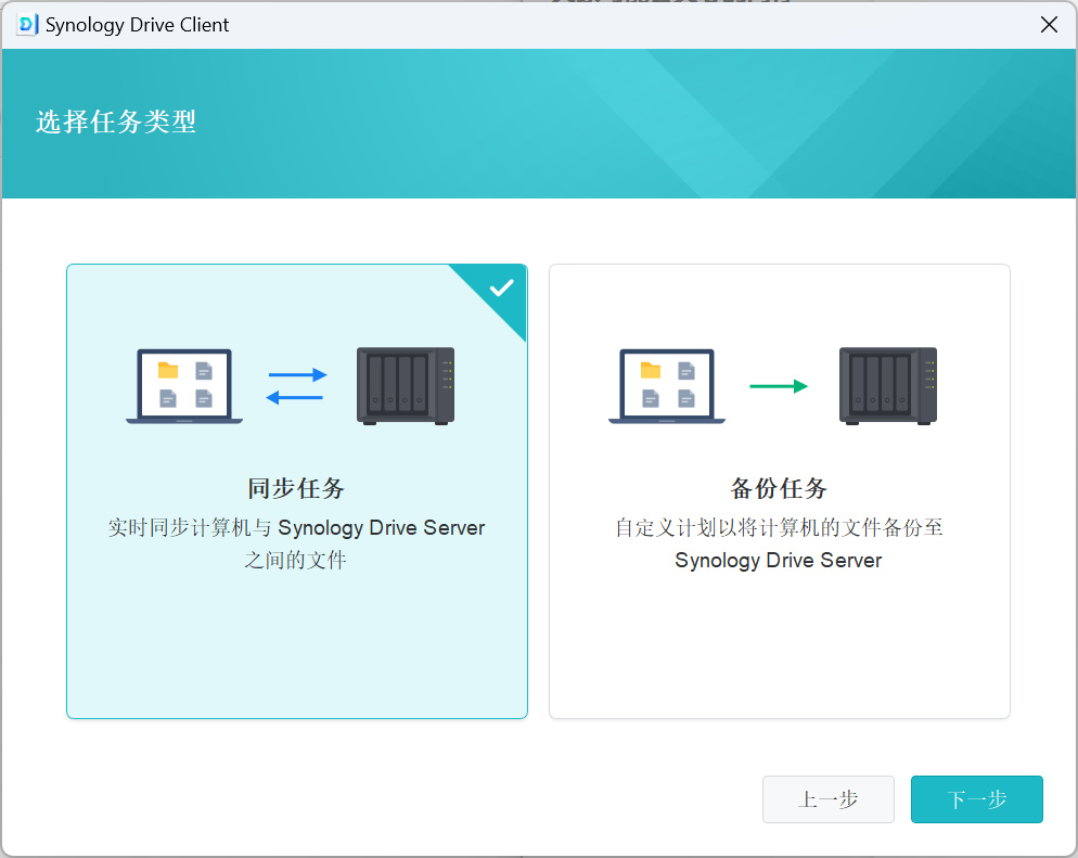 ▼应用提供同步与备份两种任务方案,同步为实时双向同步更新,备份为单向。群晖过了好久才更新单向备份,哈哈哈哈。