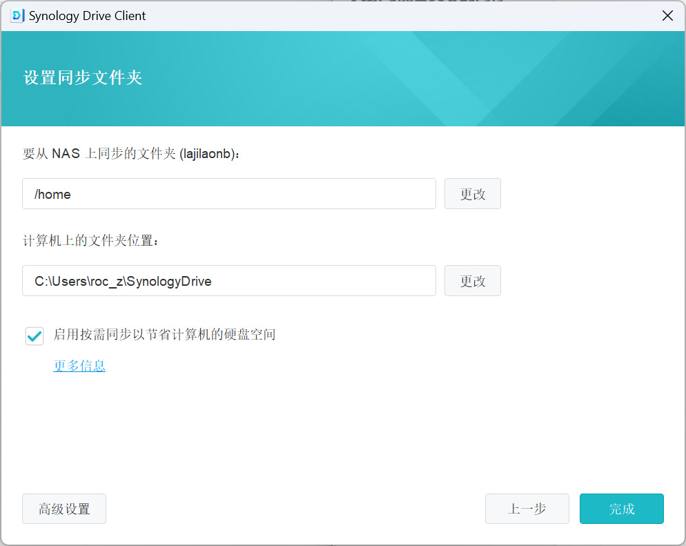 ▼NAS上的文件夹只有刚刚设置好的团队文件夹可以看到,选择好电脑上要与NAS实时同步的文件夹就好。