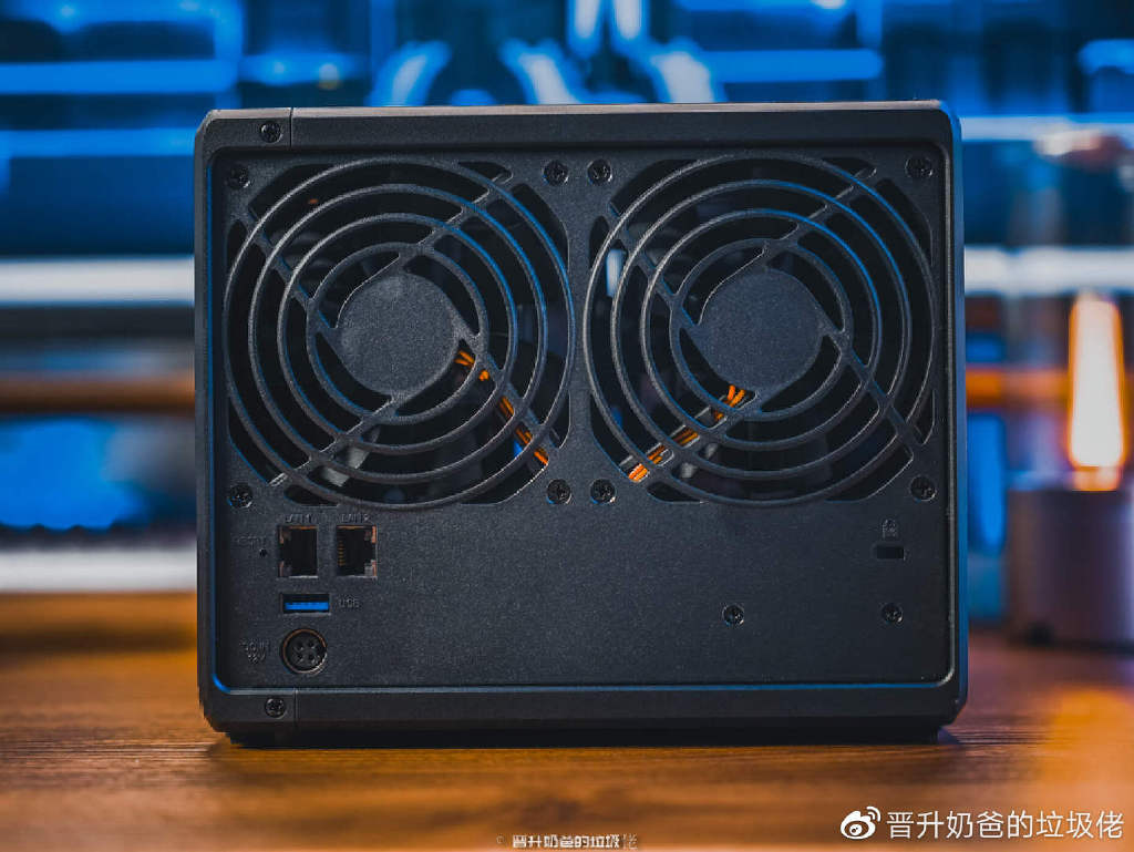 ▼翻到设备的背面,依旧是两只硕大的燃热风扇以及2个1Gbps网络传输接口,923+原本Esata的接口位置变成了USB3.2接口。