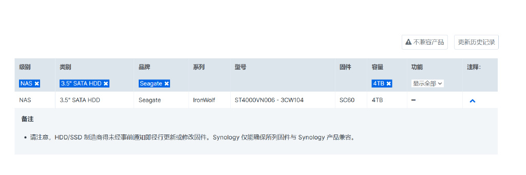 ▼希捷酷狼的VN006以及VN008系列都在群晖的兼容性列表中,酷狼搭IronWolf Health Management(IHM、酷狼健康管理软件),兼容主流NAS品牌的众多产品,具有预防、干预和恢复的功能,可大幅提高NAS系统的可靠性。